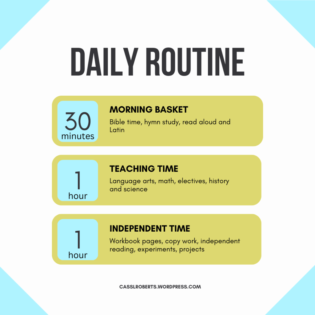 You’ll see there are three main blocks: Morning basket, teaching time and independent time.